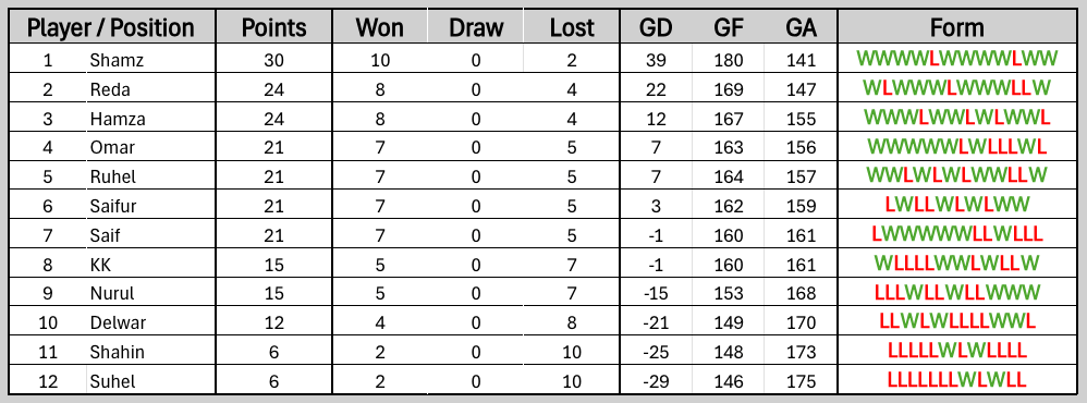 League Table: